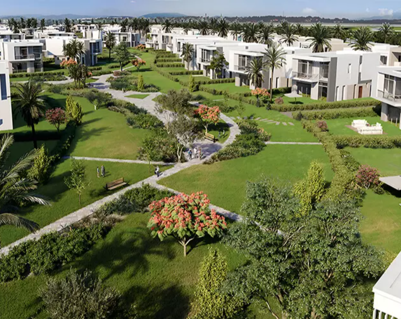 The compound spans a large area of around 400 acres, with approximately 80% dedicated to green spaces, landscapes, and facilities, encouraging a healthy, integrated lifestyle.