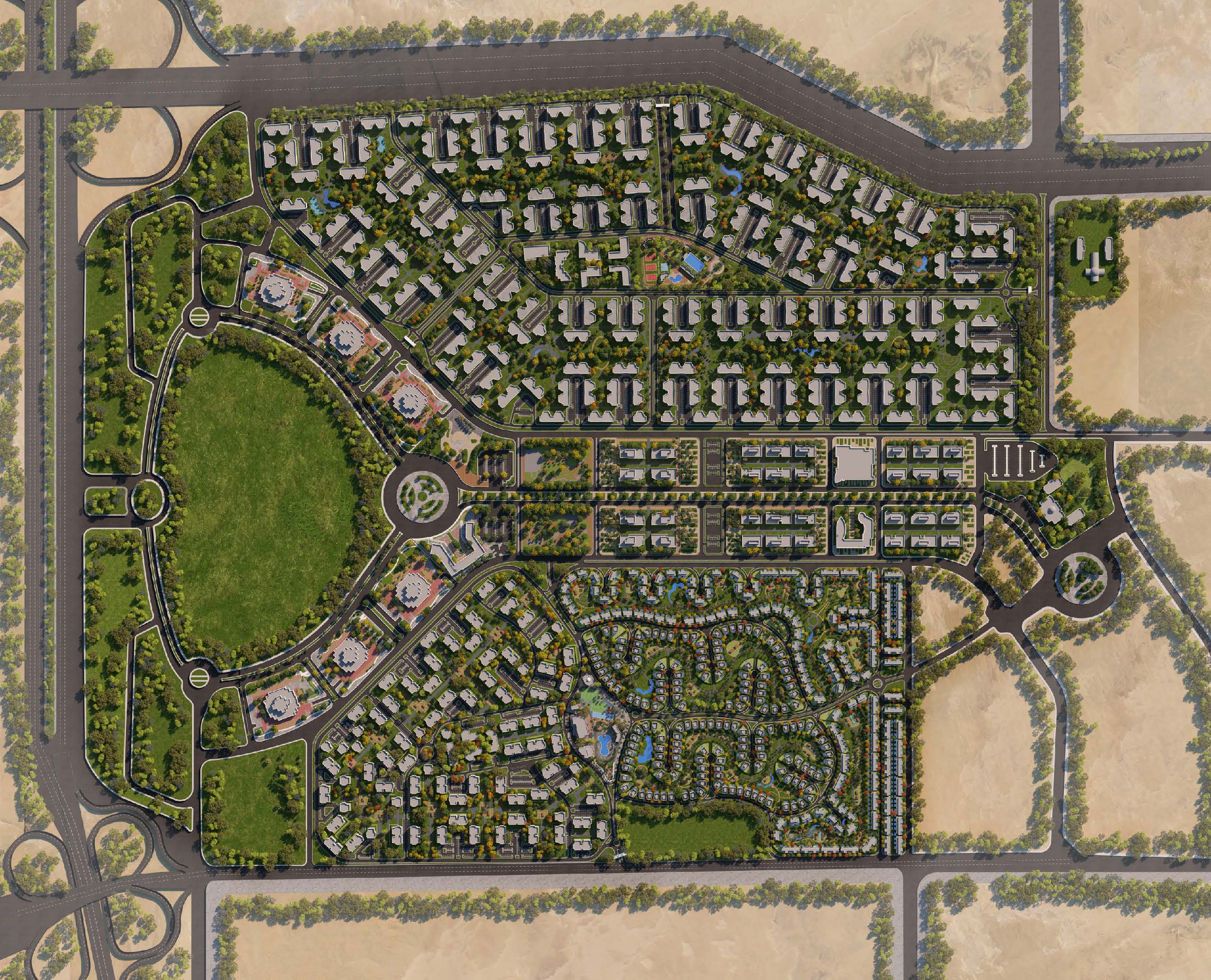 The project spans over 800 acres and is designed as a self-contained city consisting of two gated residential compounds connected by a central commercial spine.